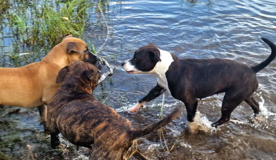 The dog owner said that her staffies "suit her perfectly". They love their runs, walks, and play time, but they're not too over the top energy wise. Despite staffies being known for being very energetic, these three have adapted perfectly to her life. They're "clever cookies", and they adore her niece. Clever, calm, affectionate, and full or personality, anthropologists might say this reflects the mirroring of identity: dogs are often chosen or cherished because they reflect or balance aspects of our own personality, character, habits, or needs.